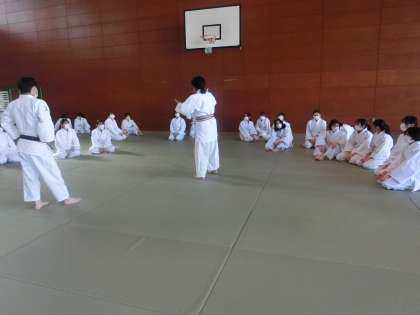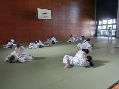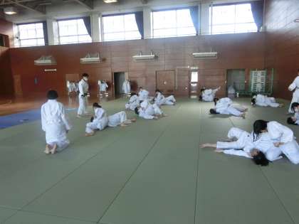 女子は柔道の授業が今日で最後でした。「袈裟固め」を実践しました。