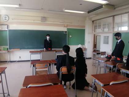 今日は生徒朝礼がありました。先週行われた委員会での報告を行いました。