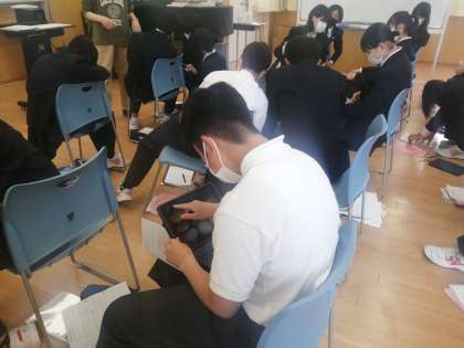様々な場面を手拍子でイメージして、4小節の作曲作りに挑戦していました。