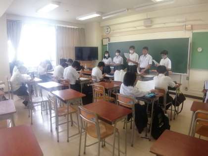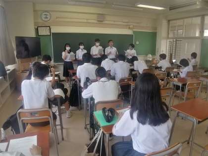 生徒会説明会がありました。現職の生徒会役員が説明します。