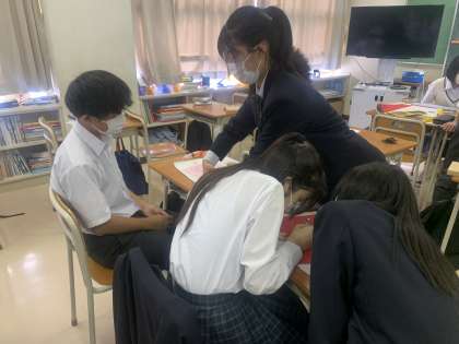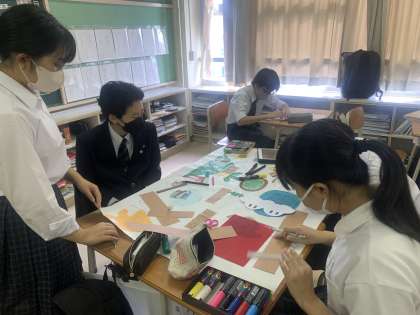 班ごとに、模造紙にまとめをしています。