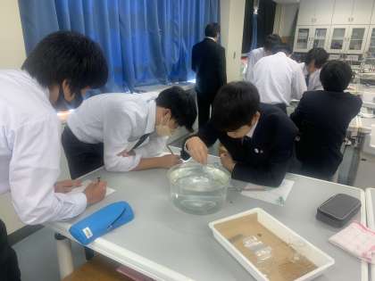生物(メダカ)の刺激に対する反応と血液の流れについて観察しました。