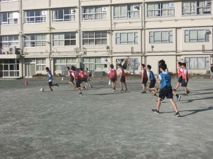 クラス対抗でサッカーの授業です。