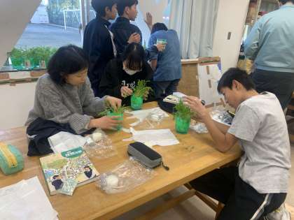 木工制作と水菜の間引き、溶液替えをして、自宅に持ち帰りました。