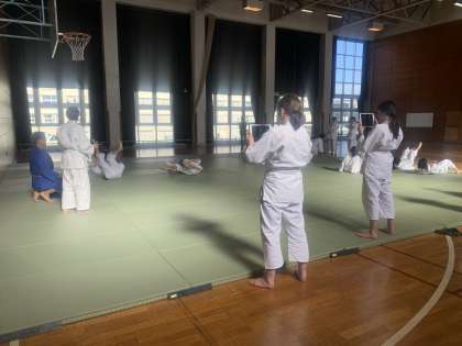 今日は柔道の受け身のテストがありました。後ろ、前、横受け身のあと、前回り受け身(左右)をしました。