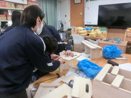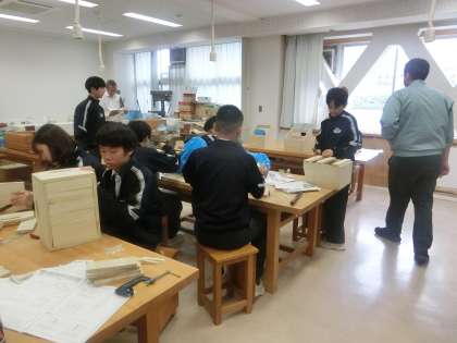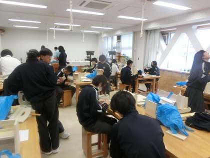 それぞれが、真剣な表情でマガジンラックや本立てなどを作成しています。