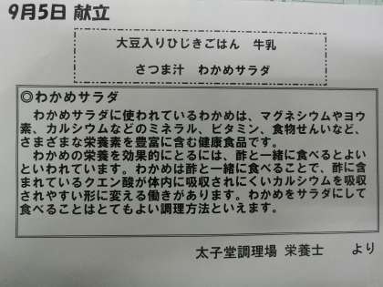 9月5日の給食