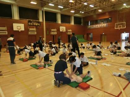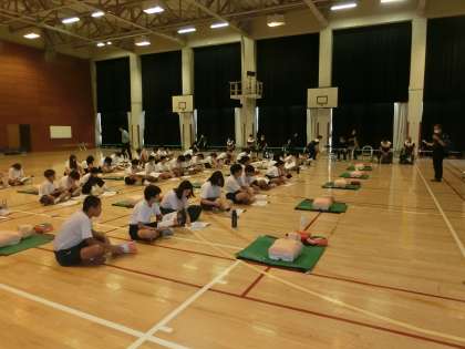 心肺蘇生法、AED取り扱いなど命を救うために最も基本的な手当を身につける訓練を行いました。