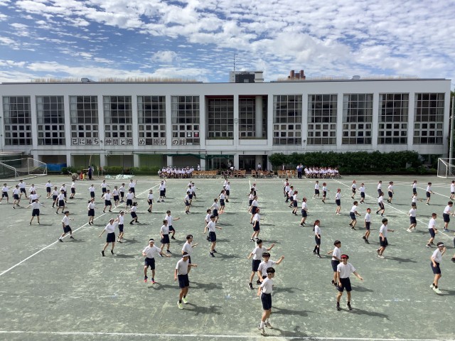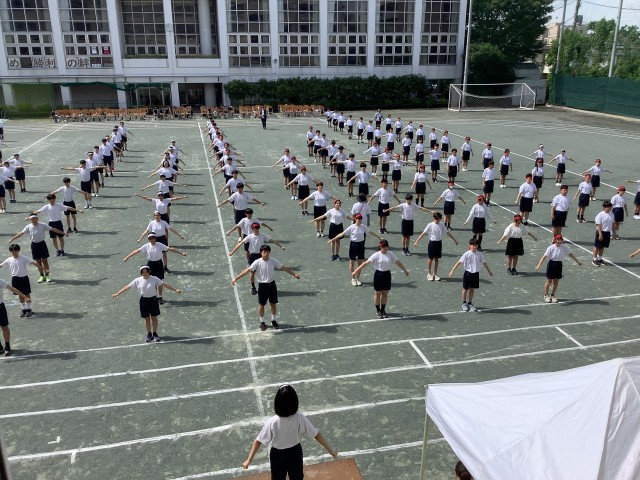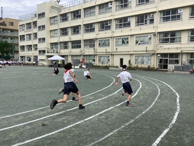 体育館工事がほぼ終わり、校庭が全面使用できるようになりました。