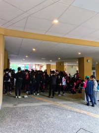 残念なが等あいにくの雨。朝会は体育館で。ラジオ体操、諸注意のあと、集合写真を撮っ...
