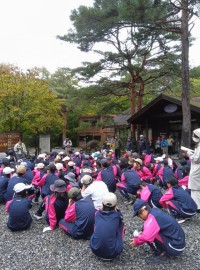 時間通りに全員集合することができました。バスに大きな荷物を積んで、出発式を終えま...