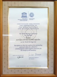 川口フィールドセンターには、世界文化遺産の登録証(複製)がありました。
