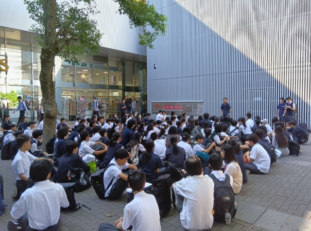 新横浜駅東広場、全員揃いました。これからいよいよ修学旅行が始まります!
