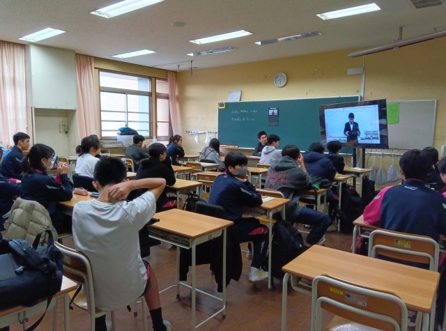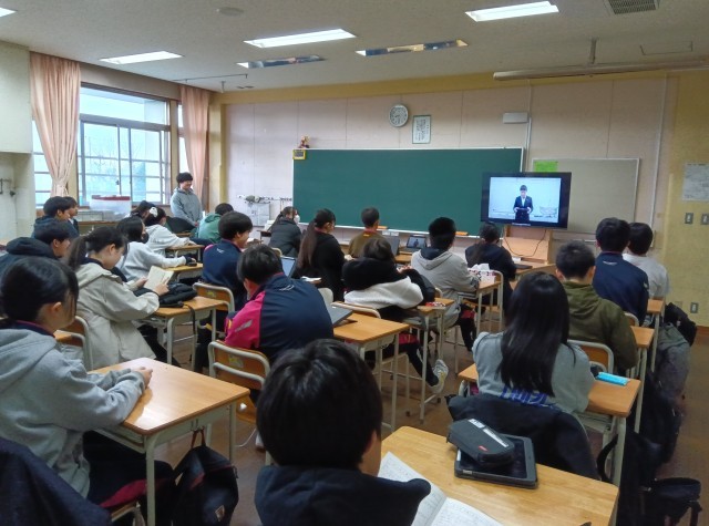 生徒朝礼をZoomで行いました。生徒会や各委員会から今月の反省と来月に向けてのお話などが発表されました。どのクラスも真剣に聞いていました。
