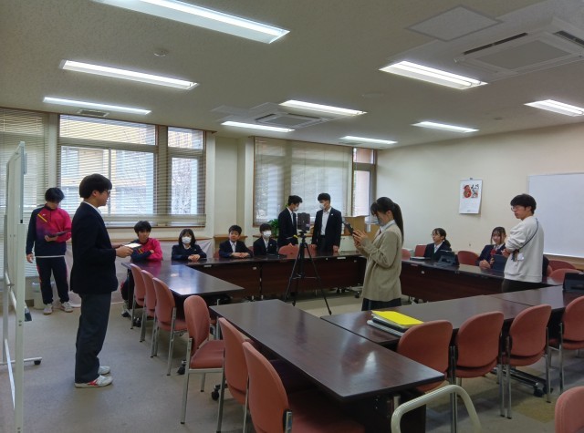生徒朝礼では先月の振り返りと今月の目標が各委員会から発表されました。生徒会からのお知らせもあり、Zoomを使って短時間ながら充実した内容となりました