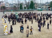 卒業式の朝です。門出の日を祝って川門側の桜がちらほら咲き始めました。