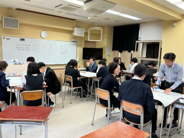 入学式を終えた午後は校内研修。わかる、できる、楽しい授業を目指して、まずは現状分析。