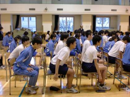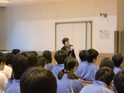 「ストレスマネジメント講習会」という新しい取り組みを3年生に行いました。「ストレスマネジメント」とは「ストレスを自己管理する」こと。ストレス社会と言われる現代において、自分のストレスと上手に付き合えるスキルを身につけることはとても大切です。今回は臨床心理士の倉田知子先生をお招きして、ストレスの仕組みを学び、実際に体を動かしながらリラックス法を体験しました。少し戸惑いながらも、体を動かし始めると一つの動きをするたびに「眠くなってきた〜」と言う人も。3年生、なかなか上手に体と心をほぐすことができていたようです。感想の中に、「リラックスして」と言われるけれど、どうすればいいのか分からなかったので今日の講習を受けてよかった、という人や、今日の体験をこれからの生活で実践していきたい、という人がたくさんいました。不安やプレッシャーに負けず、ストレスを上手に発散し、心と体のバランスをとって、必要な時に自分の力を120%発揮できるようになって欲しいと思います。