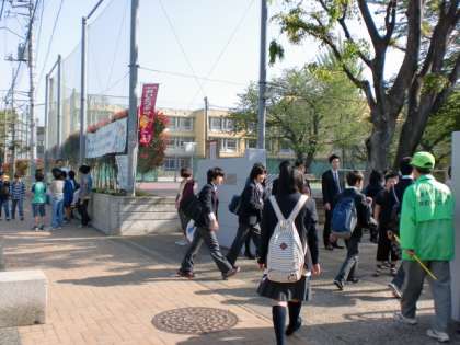 玉川中学校恒例のあいさつ運動がはじまりました。