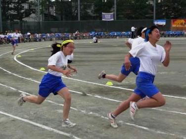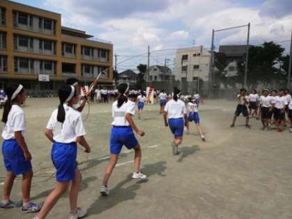 100m走と全員リレー、学年種目は全員参加の種目。学年種目はTJH48(玉川ジュニアハイスクール4クラスで8の字縄跳び)。みんなで楽しく競技をしました。