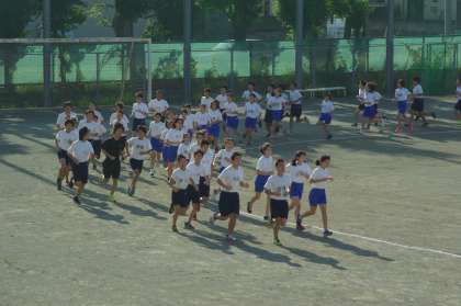 10月1日(水)に開催される世田谷区中学校陸上競技大会の朝練習を5日より始めました。むし暑い中でしたが、7時30分から本校代表選手が校庭に集まり、準備体操、ジョギングの後各自の練習に取り組みました。