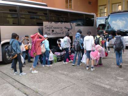 9月12日(金)16時15分 河口湖移動教室に行っていた1年生が元気に戻ってきました。3日間の様子については来週アップさせていただきます。