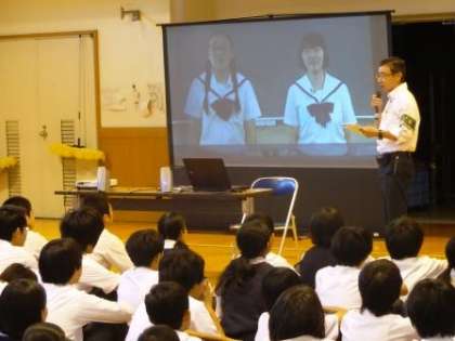 本日5校時にセーフティ教室が行われました。今回は「ケータイに潜む問題と危険」というテーマで、少年非行と犯罪被害の防止の推進をねらいとして玉川警察署の方をお招きして行われました。