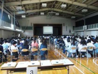 進路選択をするうえでの心構えや、今年度の入試で変わったところなど進路指導主任から説明がありました。当日は沢山の保護者の方が参加され、熱心に聴いておられました。