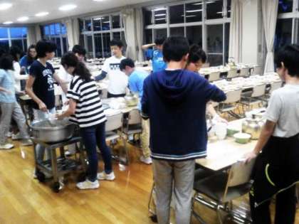 食事係が中心になって夕食のしたく、ほうとうなどいろいろいただきました。