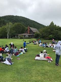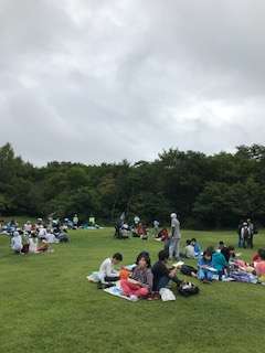 オリエンテーリングは雨のスタートでしたが、ゴールのときは雨も上がり、野鳥の森公園の広場でお弁当を食べました。