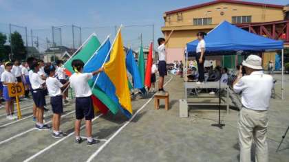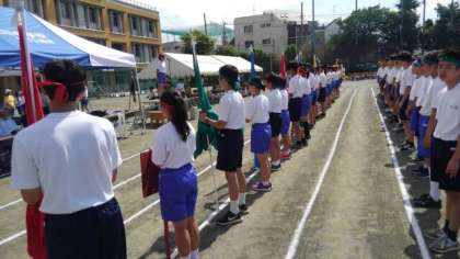 梅雨の間の好天に恵まれ、運動会を実施することができました。生徒たちの立派な入場行進から開会式が始まりました。