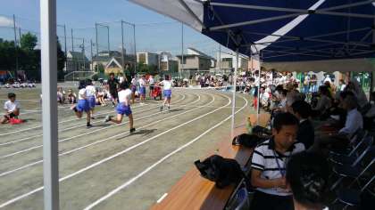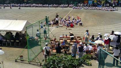 ブログラムのはじめは各学年の100メートル走です。ゴールまで全力で走りました。