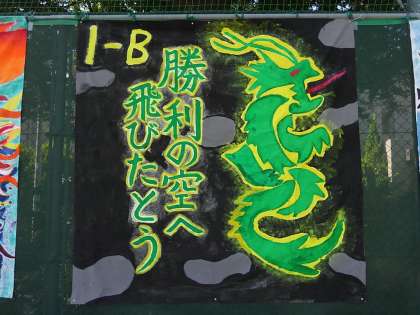 運動会のクラススローガンパネルが、今年から表彰されることとなりました。生徒、来賓の方による投票の結果、1年生はB組が優秀賞を受賞しました。