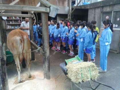 学園を後にし三日目は酪農体験です。乳搾りなど普段できない体験をしました。