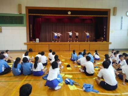 講師の先生の特別指導を仰ぎながら練習してきました。そして、そのまとめとして、班毎にダンスの発表をしました。ダンスの楽しさに触れられた取り組みでした。