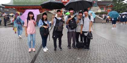 京都、伏見稲荷での班行動。あいにくの雨ですが、しっとりとした京都の風景もいいかもしれません。