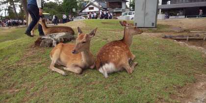 修学旅行二日目は、京都から奈良への班行動です。午後には奈良に入り、鹿で有名な奈良公園の散策です。