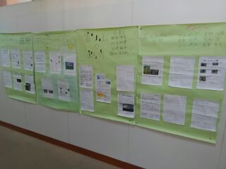 来週に控えた1学年河口湖移動教室に向けて、各班で調べ学習をしました。その内容を壁新聞にしました。教室の前に掲示されています。