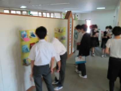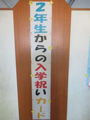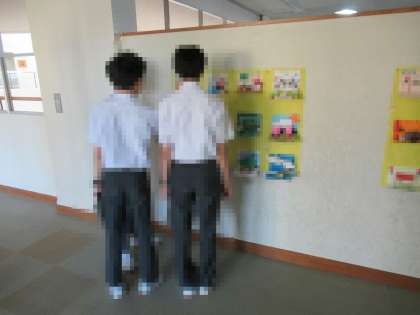 2年生が1年生の入学を祝い、併せて歓迎の意味も込めて制作した「入学祝いカード」が1年生の生活する4階に飾られています。今日は制作した2年生が鑑賞をしました。意欲的なメッセージや奇抜なアイデアが多く見られました。また、1階には季節を表す絵が展示されています。今後、生徒の了解を得たうえで、このHP上で作品紹介をしたいと思います。生徒の皆さんの才能に脱帽です。