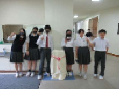 また、生徒会からは、生徒会活動で集めた「ベルマーク」により得た「冷水機」のお披露目がありました。5〜6年の収集活動により得た「冷水機」だそうです。皆さんで大事に使いましょう。※6/22には生徒会役員で「冷水機」のテープカットを行いました!
