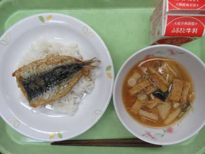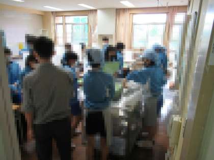 期末考査を終えた後、授業を行い、給食です。メニューは、魚のかば焼き丼・冬瓜のみそ汁・牛乳です。