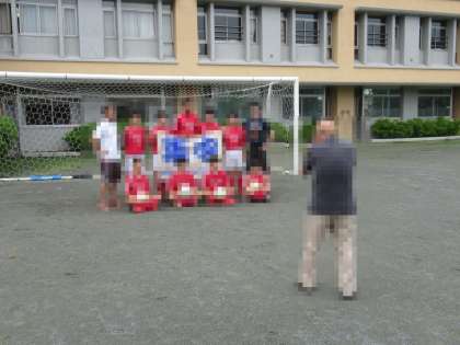 梅雨前線が活発で雨が続きますが、今日の撮影時には雨が止みました。久しぶりのユニホーム姿がうれしい3年生部員たちでした(^^♪