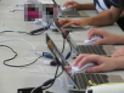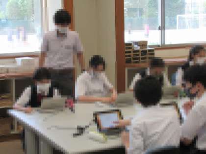初めての取り組みとして、2年生希望者を集めて「中学校プログラミング体験会」を行いました。『NPO法人 みんなのコード』の方を講師にお招きして、プログラミング体験会です。