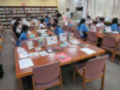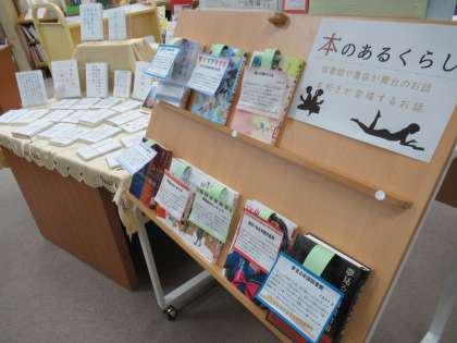 写真は、図書委員会の様子です。本校司書による、工夫された開架が見られます。読書の秋が近づいてきました。