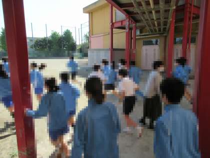 緊急時を予想して、昼休みの終了直前に避難訓練です。生徒それぞれがいた場所から校庭に避難しました。放送の指示だけでの行動でしたが、校庭に出ると小走りに走る生徒の皆さんでした。よく協力してくれました。
