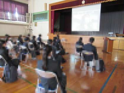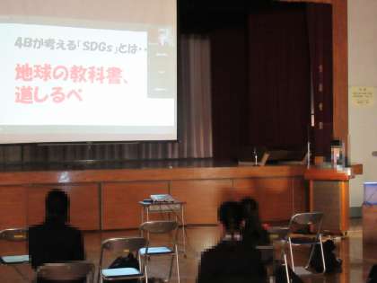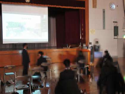 玉川中学校で「サミット報告会」が行われ、本校生徒会役員3名が参加しました。