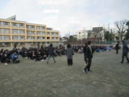 昨日から学年末考査前1週間となり、落ち着いた学校生活ですが、この訓練も素早く整然と行うことができました。今日は寒さが厳しいため、点呼確認後は生徒の皆さんをすぐに教室に戻しました。今年度の避難訓練も来月を残すだけとなりました。