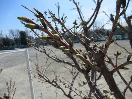 校庭に面した「桜」のつぼみがふくらみはじめました。日当たりがよく、暖かいからでしょう。3年生の皆さんの前途を祝福するようです。