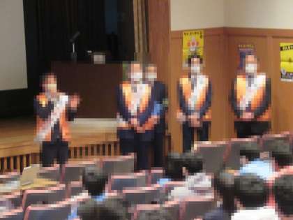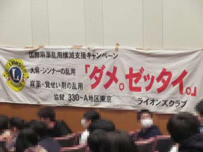 「薬物乱用は取り返しのつかない失敗」の教えをいただき、身を引き締める3年生の皆さんでした。東京玉川ライオンズクラブ・玉川警察署の皆様、ありがとうございました。