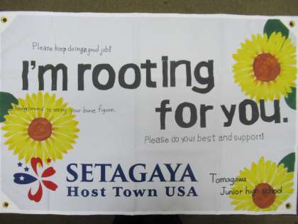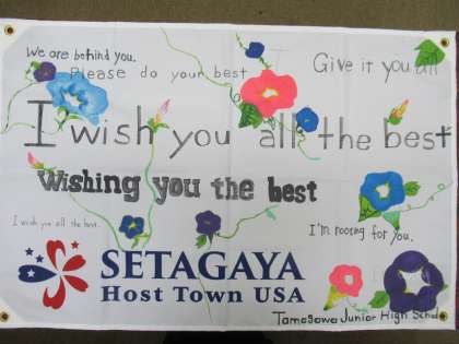美術部「アメリカ選手団を応援するための横断幕」(校長より)